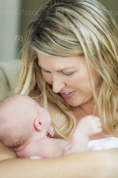Мать держит новорожденного ребенка