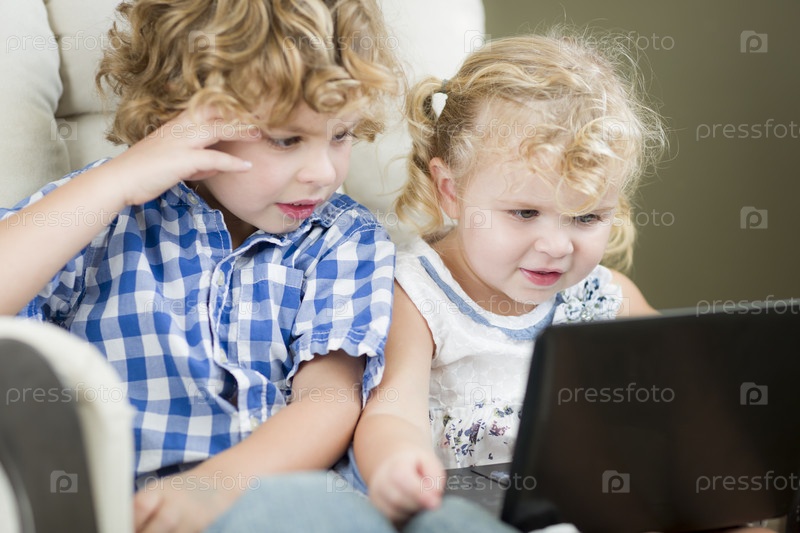 Брат и сестра с ноутбуком