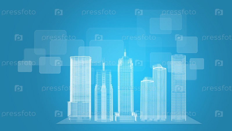 Современные здания на голубом фоне