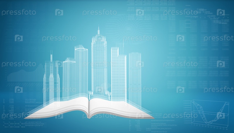 Современные здания на голубом фоне