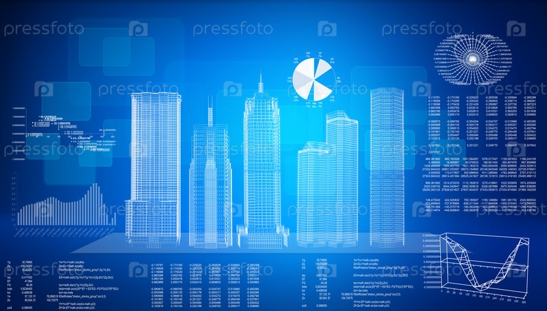 Современные здания на голубом фоне