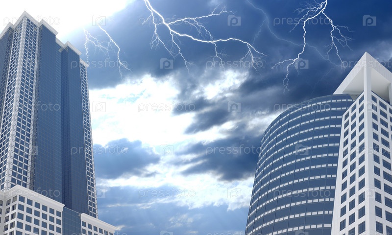 Небоскребы и вечернее небо с облаками