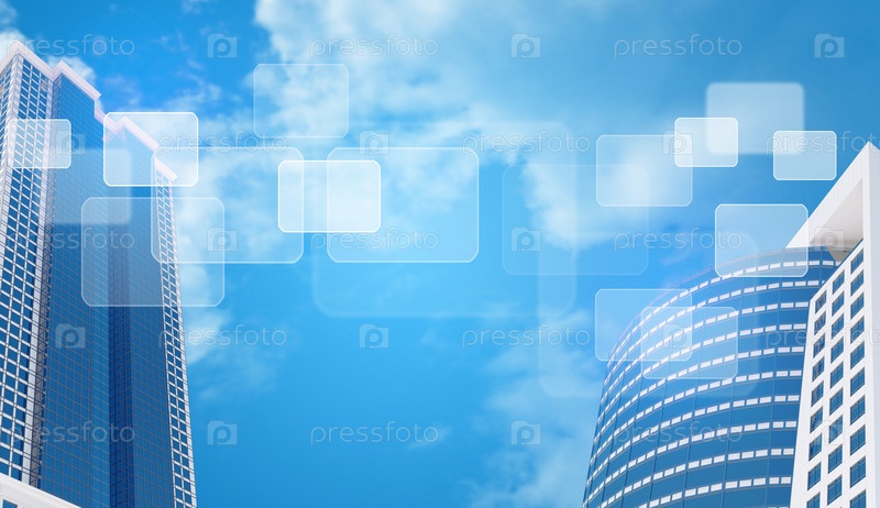 Небоскребы на фоне неба с символами и элементами