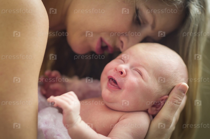 Мать держит новорожденную девочку