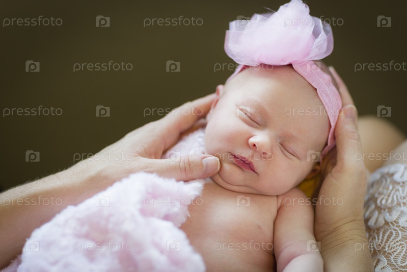 Руки матери держат новорожденного ребенка