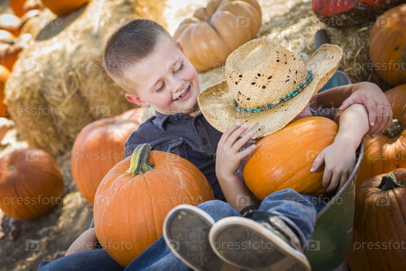 Маленькие мальчики с урожаем тыкв