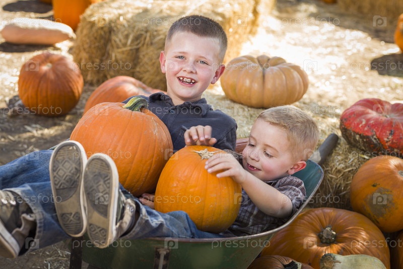 Маленькие мальчики с урожаем тыкв