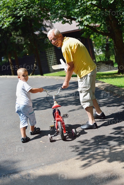 Дедушка с внуком в парке