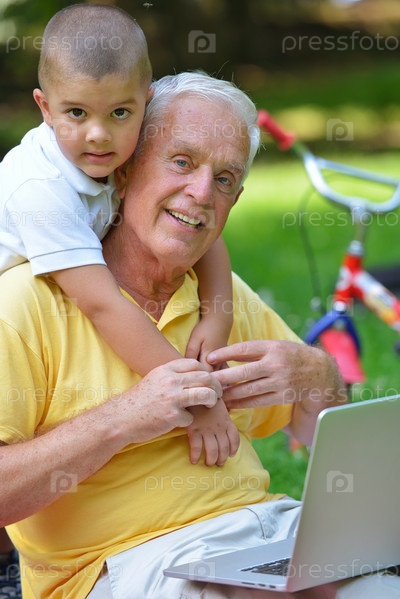 Пожилой мужчина с маленьким мальчиком в парке