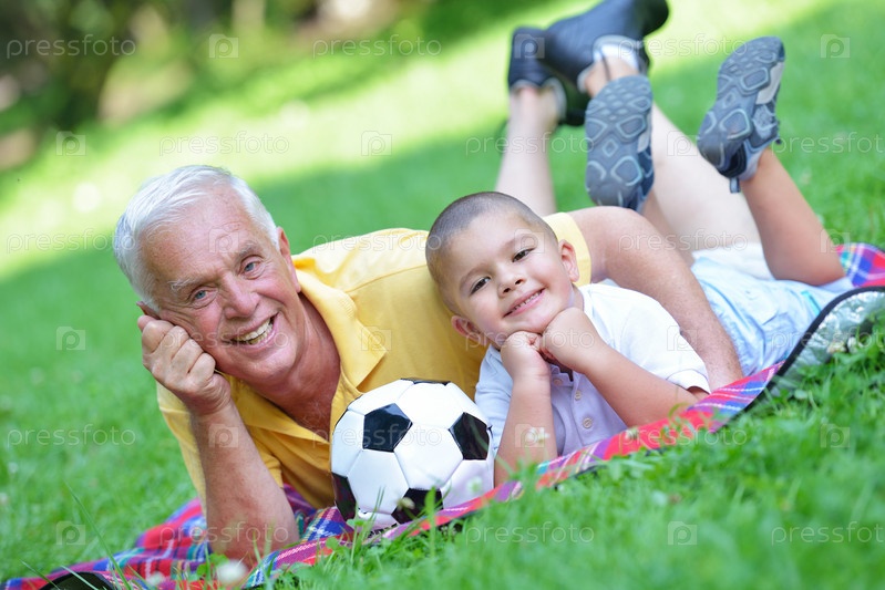 Счастливый пожилой мужчина с мальчиком в парке
