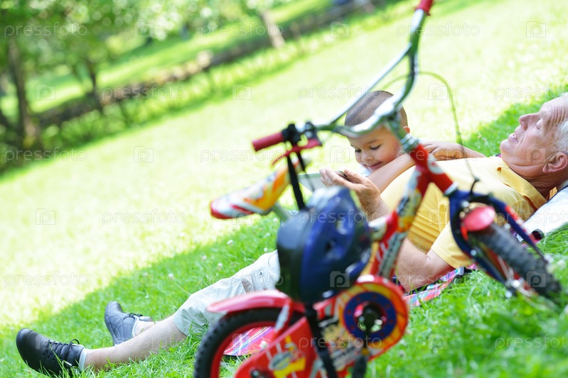 Счастливый пожилой мужчина с мальчиком в парке