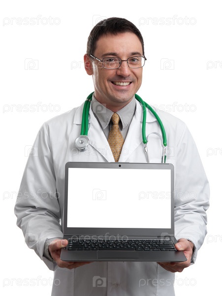 Доктор держит ноутбук