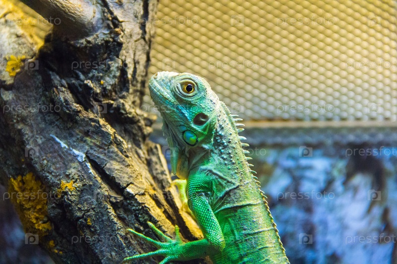 Зеленая ящерица в аквариуме