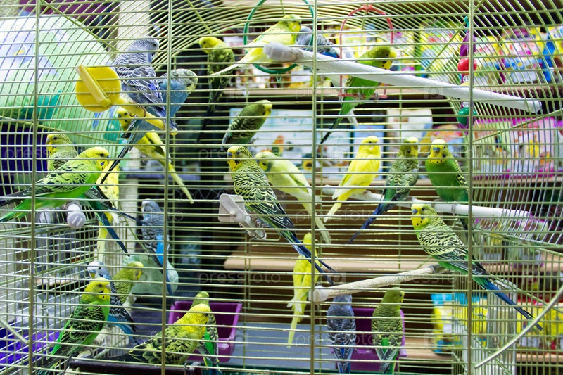 Волнистые попугайчики в клетке