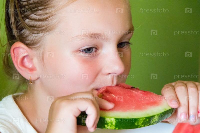Девочка ест арбуз