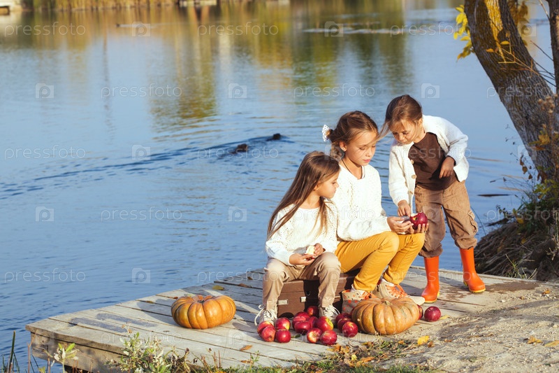 Дети играют у озера