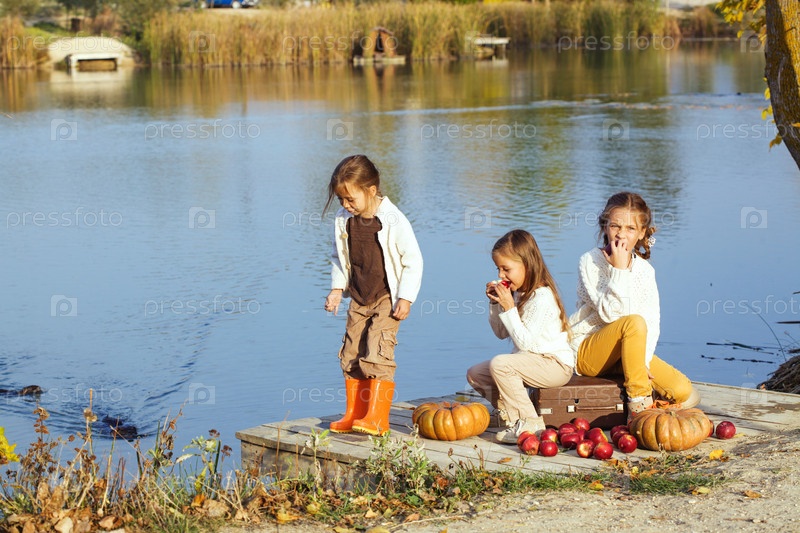 Дети играют у озера