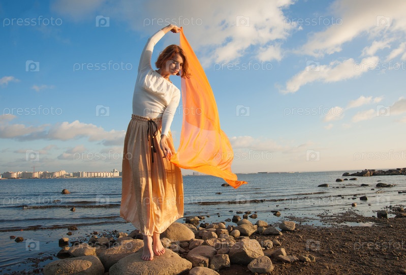 Молодая женщина на берегу моря