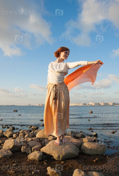 Молодая женщина на берегу моря