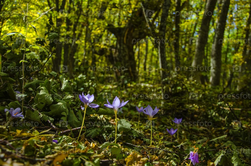 Крокус в осеннем лесу