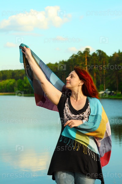 Женщина средних лет на берегу водохранилища