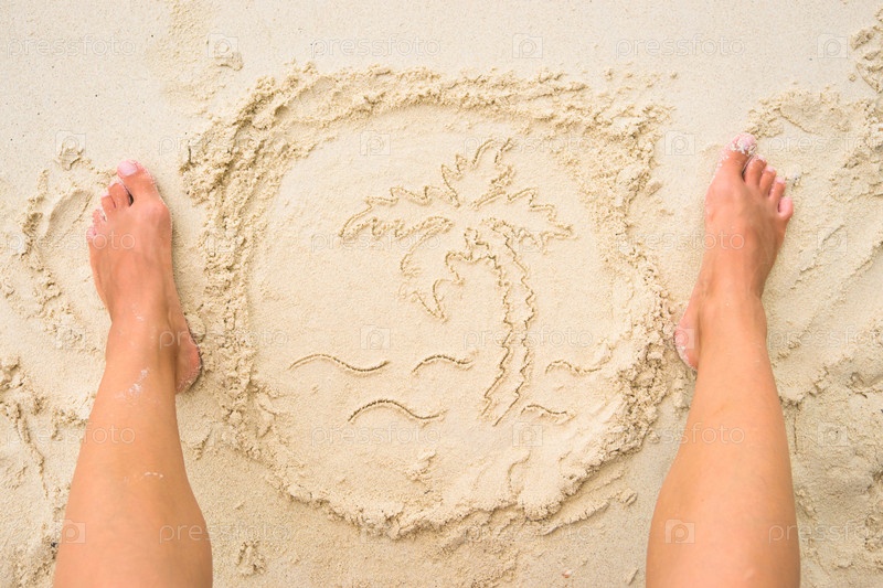 Женские ноги и рисунок на песке