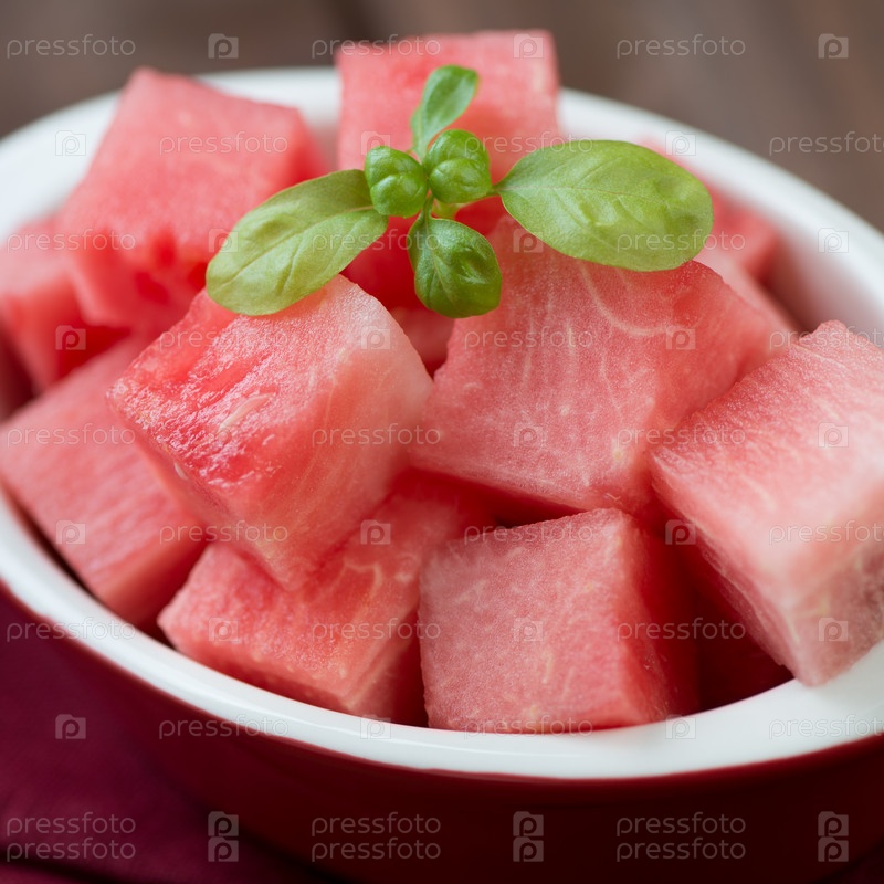 Свежий арбуз кубиками крупным планом
