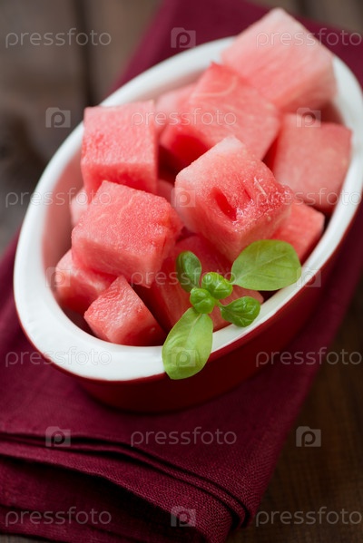 Свежий арбуз, нарезанный кубиками
