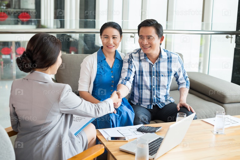 Агент по недвижимости с семейной парой