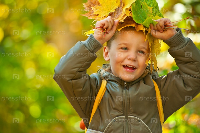 Мальчик с осенними листьями