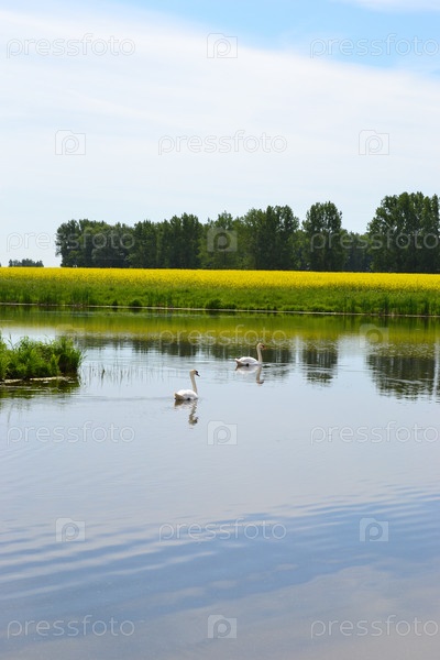 Лебеди плывут по реке, Слуцкий район, Беларусь