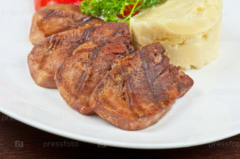 Язык с овощами на гриле