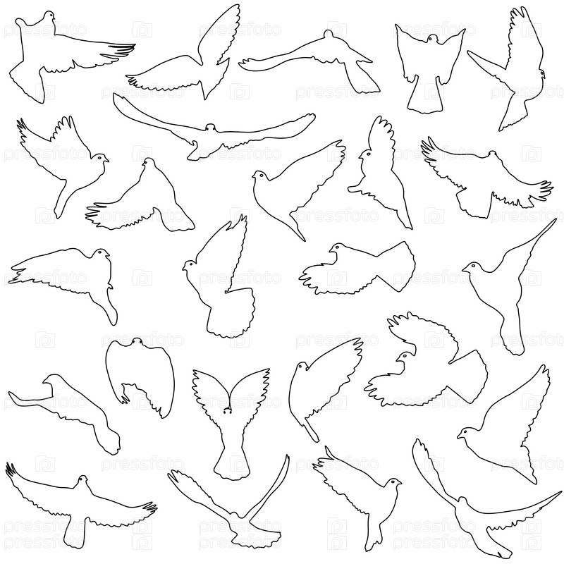 Набор силуэтов голубей. Векторные иллюстрации