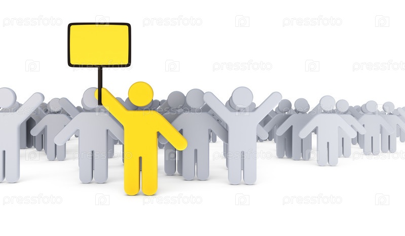 Забастовка рабочих, на переднем плане - лидер с плакатом, 3D