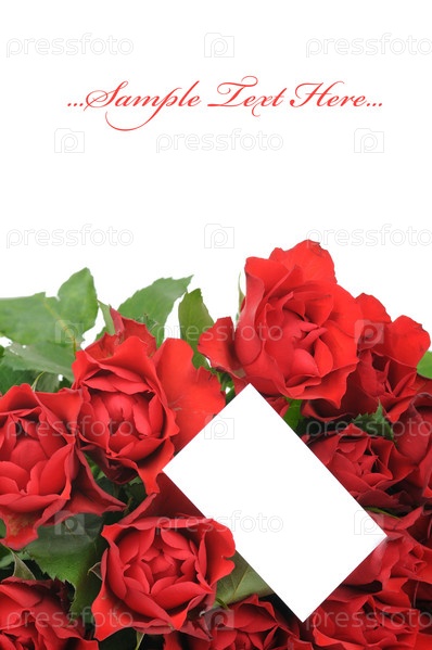 Букет красных роз поздравительная открытка изолирована на белом фоне