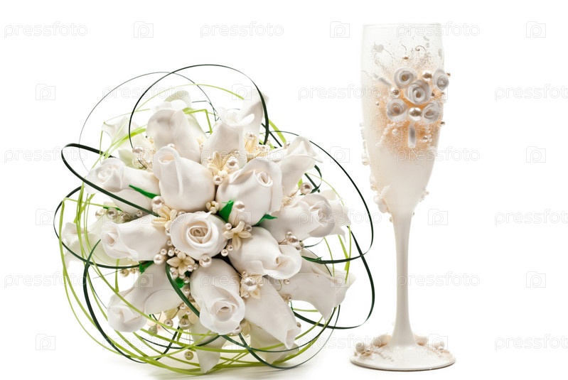 Красивый бокал и букет белых роз