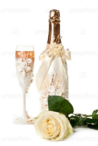 Шампанское и белая роза