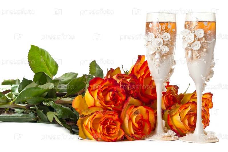 Бокалы шампанского и розы