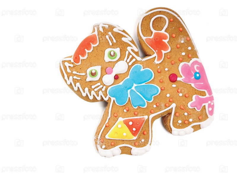 Пряник в форме котенка на белом фоне