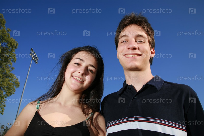 Счастливая молодая пара на открытом воздухе