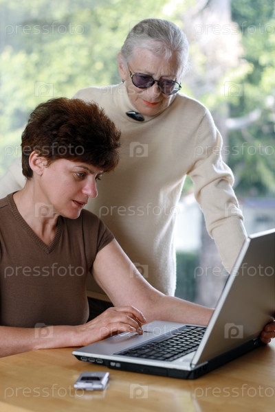 Пожилая женщина со своей матерью за компьютером