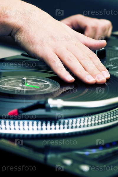 Руки диск-жокея на виниловой пластинке