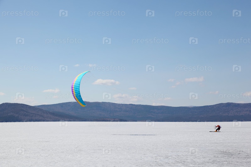 Соревнования по сноукайтингу на озере Тургояк