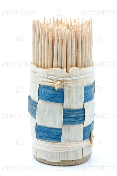 Связка деревянных зубочисток на белом фоне