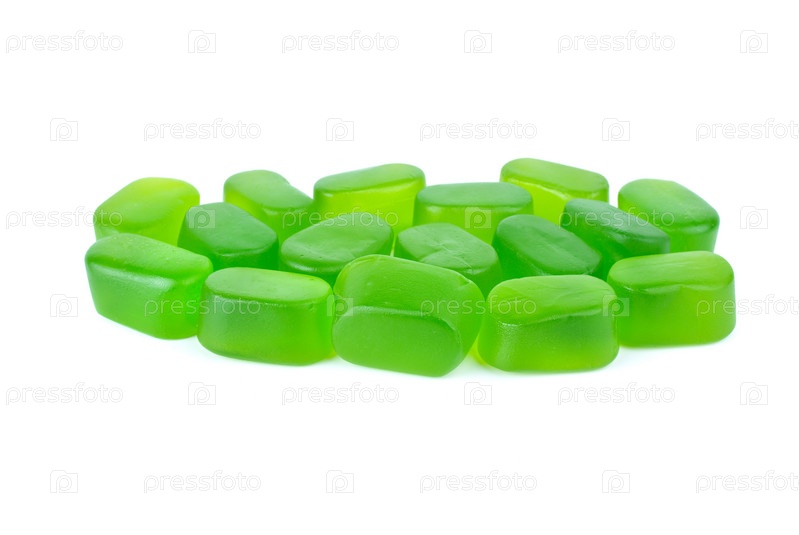 Несколько зеленых мармеладок на белом фоне