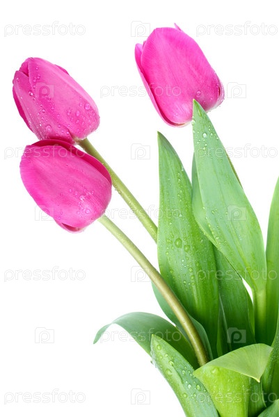 Розовые тюльпаны на белом фоне
