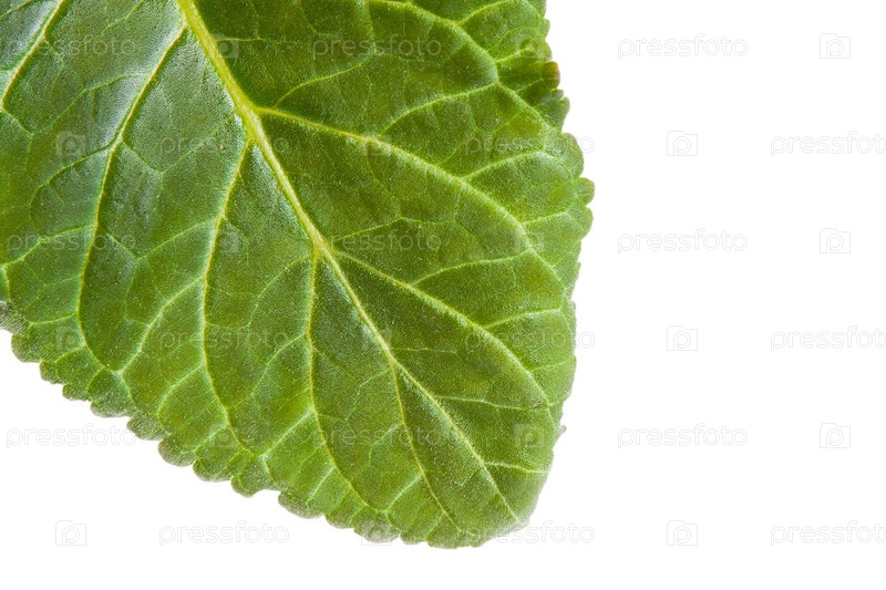 Зеленый лист на белом фоне
