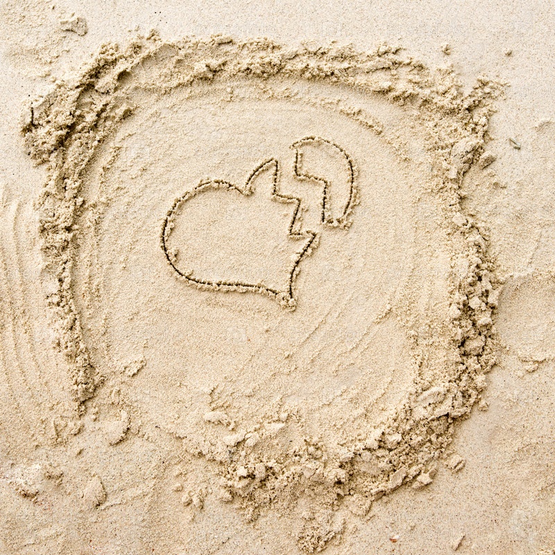 Рисунок разбитого сердца на песке