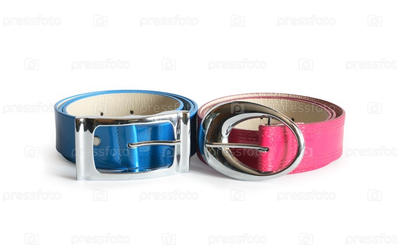Два ремня крупным планом на белом фоне