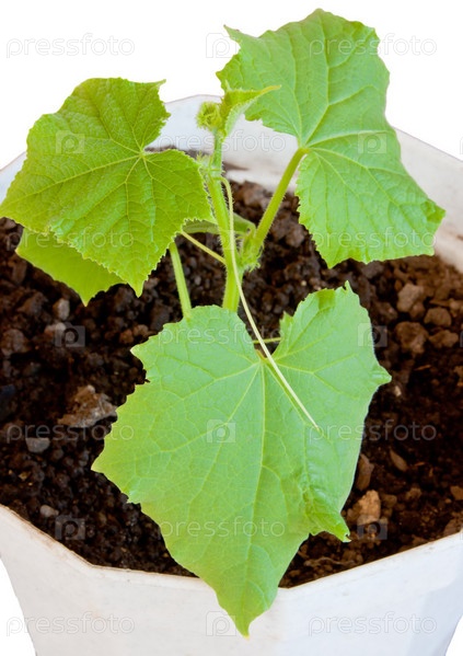 Рассада огурцов в горшке крупным планом